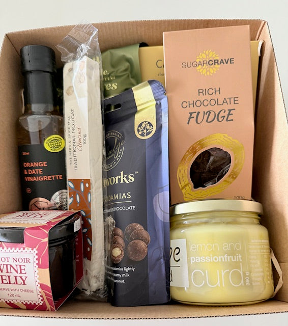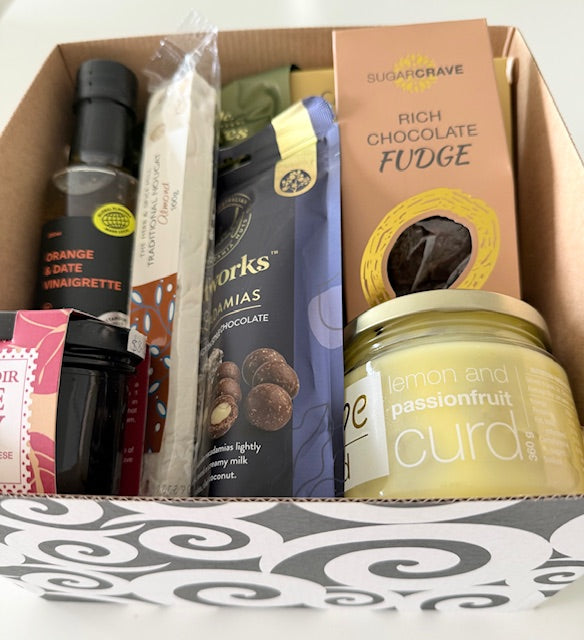 Peplers Vinaigrette (White Wine, Red Wine, Tamarillo, Pomegranate & Ginger, Orange & Date or Black Doris Plum), Almond Nougat, Pinot Noir Wine Jelly, Nutworks Macadamias Lamington Style Chocolate, Kiwi Artisan Olives (Lemon Basil & Kawakawa or Manuka Wood Smoked Olives), Sugarcrave Rich Chocolate Fudge, Crave Lemon & Passionfruit Curd and Sugarcrave Premium Caramel Pebbles